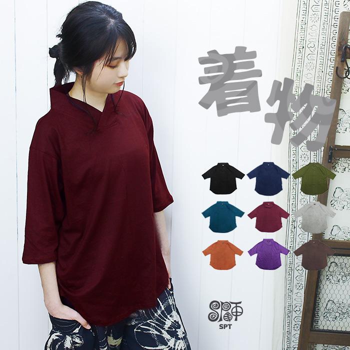 和風 Tシャツ レディース メンズ ユニセックス キモノ風衿5分袖カットソー 春夏 ブラック ネイビー カーキ メール便ok 5926 エスニック雑貨 ティントン 通販 Yahoo ショッピング